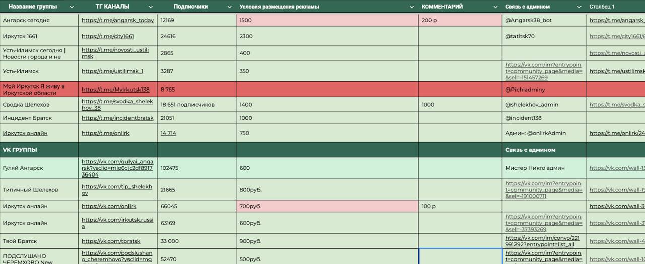 Подбор площадок осуществлялся вручную с фокусом на регионы Иркутской области.